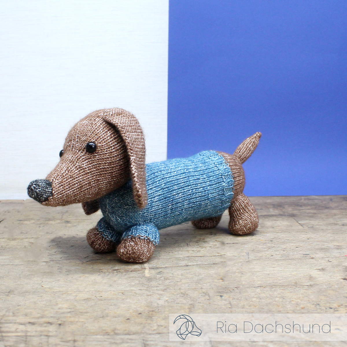 Brei Ria Teckel, een schattige en trouwe hondenvriend. Het Hardicraft breipakket bevat alles wat je nodig hebt, exclusief een breinaald.