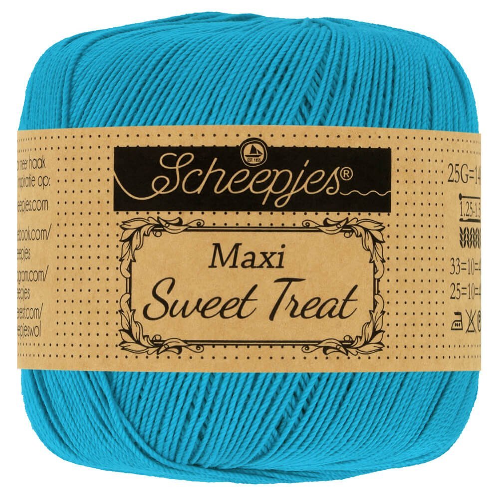 Je zoekt een dun haak of brei garen, een Blauw katoen met mooie heldere kleuren wat met een kleine naald te verwerken is. Bekijk dan deze Scheepjes Maxi Sweet Treat 146 Vivid Blue. Een prachtig garen wat met naald 1,25 of 1,5 te haken of breien is. Scheepjes Maxi Sweet Treat is evenals Scheepjes Maxi Sugar Rush een zeer fijn (garendikte Lace) gemerceriseerd garen van 100% katoen. Scheepjes Maxi Sweet Treat heeft een subtiel glansje en een sterk getwijnde draad, waardoor het brei- of haakwerk een fraaie gladde afwerking krijgt. Dit fijne garen is ideaal voor opengewerkte brei- of haakpatronen, zoals ajourbreien, kantbreien of filethaakwerk, maar natuurlijk ook voor luchtige kleding of accessoires. Bij de productie is gebruikgemaakt van een volledig biologische afvalwaterzuivering, waardoor het gebruikte water op een veilige manier wordt gerecycled en hergebruikt. Scheepjes Maxi Sweet Treat heeft het EN 71-3 keurmerk, wat aangeeft dat dit garen veilig is in gebruik voor personen met een gevoelige huid en met name voor speelgoed voor baby’s en kinderen. Dat maakt dit garen tot een verantwoorde keus voor bijvoorbeeld babydekentjes, knuffels of amigurumi. Scheepjes Maxi Sweet Treat, Maxi Sugar Rush en Maxi zijn identieke garens, maar elk met een andere looplengte. Scheepjes Maxi Sweet Treat is verkrijgbaar in 87 verschillende kleuren. De aanbevolen naalddikte is 1.25-1.50mm. Een bol weegt 25 gram en heeft een looplengte van 140 meter.
