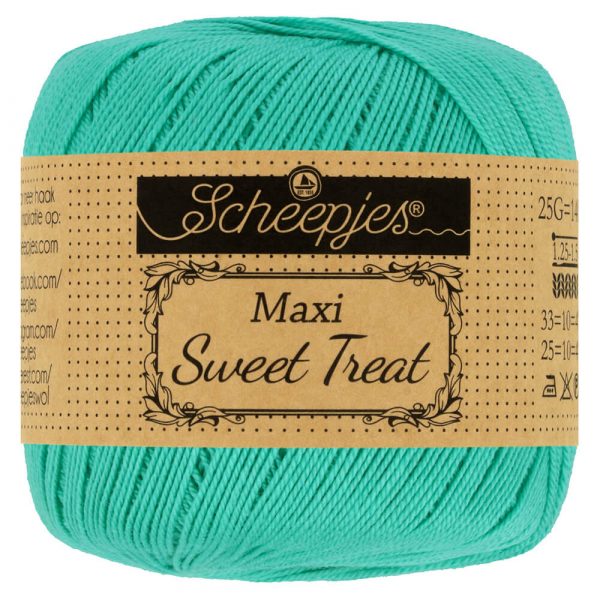 Je zoekt een dun haak of brei garen, een Blauw katoen met mooie heldere kleuren wat met een kleine naald te verwerken is. Bekijk dan deze Scheepjes Maxi Sweet Treat 253 Tropic. Een prachtig garen wat met naald 1,25 of 1,5 te haken of breien is. Scheepjes Maxi Sweet Treat is evenals Scheepjes Maxi Sugar Rush een zeer fijn (garendikte Lace) gemerceriseerd garen van 100% katoen. Scheepjes Maxi Sweet Treat heeft een subtiel glansje en een sterk getwijnde draad, waardoor het brei- of haakwerk een fraaie gladde afwerking krijgt. Dit fijne garen is ideaal voor opengewerkte brei- of haakpatronen, zoals ajourbreien, kantbreien of filethaakwerk, maar natuurlijk ook voor luchtige kleding of accessoires. Bij de productie is gebruikgemaakt van een volledig biologische afvalwaterzuivering, waardoor het gebruikte water op een veilige manier wordt gerecycled en hergebruikt. Scheepjes Maxi Sweet Treat heeft het EN 71-3 keurmerk, wat aangeeft dat dit garen veilig is in gebruik voor personen met een gevoelige huid en met name voor speelgoed voor baby’s en kinderen. Dat maakt dit garen tot een verantwoorde keus voor bijvoorbeeld babydekentjes, knuffels of amigurumi. Scheepjes Maxi Sweet Treat, Maxi Sugar Rush en Maxi zijn identieke garens, maar elk met een andere looplengte. Scheepjes Maxi Sweet Treat is verkrijgbaar in 87 verschillende kleuren. De aanbevolen naalddikte is 1.25-1.50mm. Een bol weegt 25 gram en heeft een looplengte van 140 meter.