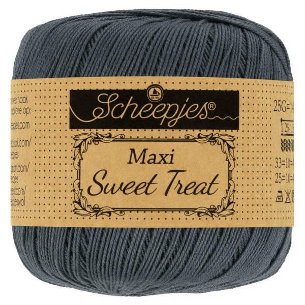 Je zoekt een dun haak of brei garen, een Grijs katoen met mooie heldere kleuren wat met een kleine naald te verwerken is. Bekijk dan deze Scheepjes Maxi Sweet Treat 393 Charcoal. Een prachtig garen wat met naald 1,25 of 1,5 te haken of breien is. Scheepjes Maxi Sweet Treat is evenals Scheepjes Maxi Sugar Rush een zeer fijn (garendikte Lace) gemerceriseerd garen van 100% katoen. Scheepjes Maxi Sweet Treat heeft een subtiel glansje en een sterk getwijnde draad, waardoor het brei- of haakwerk een fraaie gladde afwerking krijgt. Dit fijne garen is ideaal voor opengewerkte brei- of haakpatronen, zoals ajourbreien, kantbreien of filethaakwerk, maar natuurlijk ook voor luchtige kleding of accessoires. Bij de productie is gebruikgemaakt van een volledig biologische afvalwaterzuivering, waardoor het gebruikte water op een veilige manier wordt gerecycled en hergebruikt. Scheepjes Maxi Sweet Treat heeft het EN 71-3 keurmerk, wat aangeeft dat dit garen veilig is in gebruik voor personen met een gevoelige huid en met name voor speelgoed voor baby’s en kinderen. Dat maakt dit garen tot een verantwoorde keus voor bijvoorbeeld babydekentjes, knuffels of amigurumi. Scheepjes Maxi Sweet Treat, Maxi Sugar Rush en Maxi zijn identieke garens, maar elk met een andere looplengte. Scheepjes Maxi Sweet Treat is verkrijgbaar in 87 verschillende kleuren. De aanbevolen naalddikte is 1.25-1.50mm. Een bol weegt 25 gram en heeft een looplengte van 140 meter.